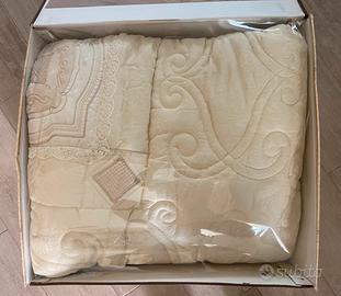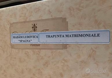 Trapunta matrimoniale Madame Ludovica, nuova mai usata. Un capo esclusivo per chi desidera portare eleganza e comfort nella propria camera da letto. La trapunta è realizzata con materiali pregiati, morbida al tatto e rifinita con cura nei dettagli, per garantire non solo calore ma anche un tocco di raffinatezza senza tempo. Priva di cuscini. Perfetta come regalo o per chi ama circondarsi di qualità e stile.