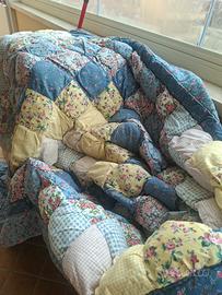 trapunta matrimoniale patchwork double face con copri cuscini uguali