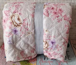 Vendo bellissima trapunta piumino per letto matrimoniale, NUOVA e ancora sigillata. Stile floreale romantico, con rose rosa, fiori viola e accenti dorati su sfondo crema. Trapuntatura a quadri. Perfetta per dare un tocco country o shabby chic alla camera.