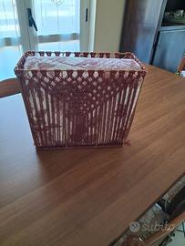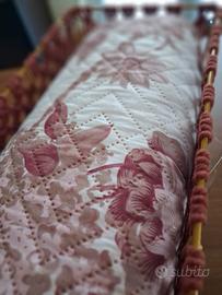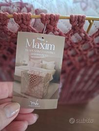 Trapuntino, mezza stagione in poliestere con fantasia di rose, coloror borgogna e panna , misura matrimoniale standard, con elegante custodia in ferro battuto e intreccio macramé di corda color borgogna. #idearegalo