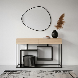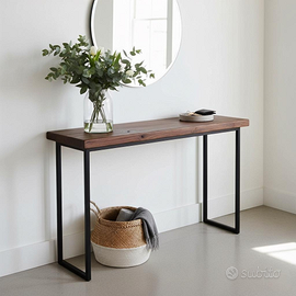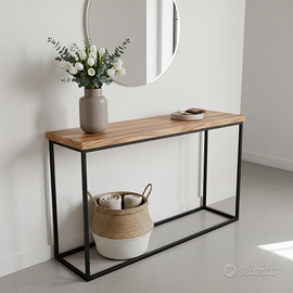 Consolle artigianali dove il calore del legno massello incontra il carattere del metallo industrial e la magia della resina.