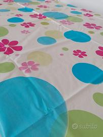 Travaglia di plastica 193 x 140 cm Per tavole da esterno o picnic sul prato Fantasia fiori cerchi È senza bordo si può tagliare e ridimensionare