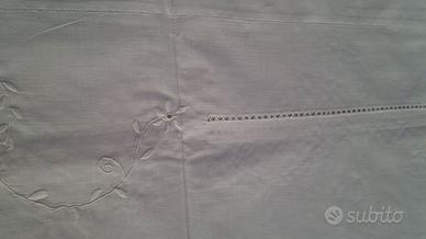 Traversa in lino antica ricamata