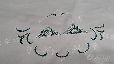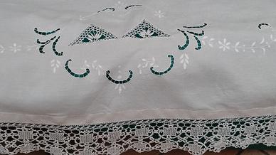 Traversa _ finta in puro lino con ricami a mano e merletto.Mai usata.Mis100x254 cm