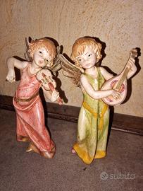 Tre Angioletti musicanti. I due più alti (16 cm) sono in resina. Quello piccolo (11 cm) è in ceramica.