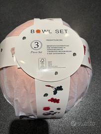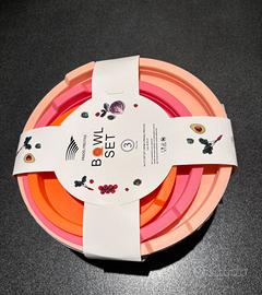Tre bowl set nuove con cartellino, contenitori con coperchio ermetico, materiale plastica, tre differenti colori, marca Pradel Prestige, resistenti si possono lavare anche in lavastoviglie, mai usati. Prezzo 19€.
