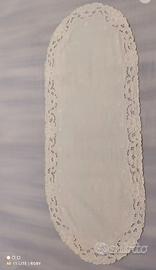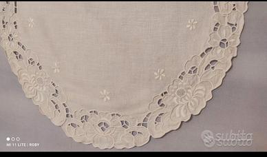 Vendo tre centrini puro lino bianchi ricamati a mano, due per comodini e uno grande comò