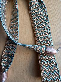 3 coppie di Embrasse intrecciati bicolore per tende. Diversi colori. Possibile vendita separata, 6 euro a coppia. In blocco 15 euro.