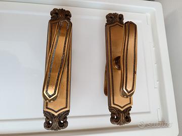 Tre maniglie d'epoca in ottone interne e esterne, misure una da centimetri 24, 2 da centimetri 18. Ottime condizioni.