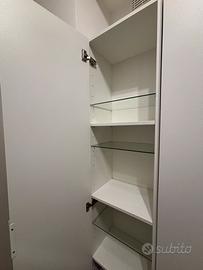 Vendo: - un mobile sospeso 60 L 30 P 75 H colore bianco con ripiani regolabili. - due colonne 40 L 34 P con maniglia 192 H (piu 8 cm di piedini aggiunti per non farle toccare a terra) colore bianco con ripiani alternati vetro e bianco regolabili Vendibili separatamente Ritiro a carico dell’acquirente