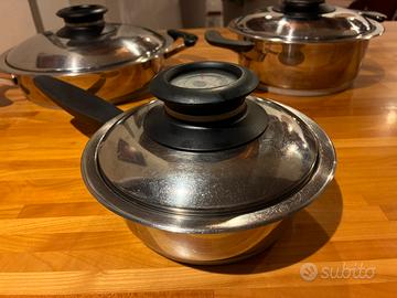 Vendo pentole AMC originali, in acciaio inox di alta qualità, complete di coperchio con termometro Visiotherm (per cottura controllata e a risparmio energetico).