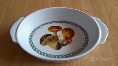 Una mini zuppiera Laurus diametro 10 cm, una piccola terrina Amanita 18x14 cm, un piattino a foglia Malva che presenta una sbeccatura come da foto 19x21 cm