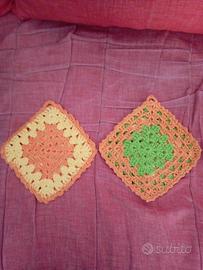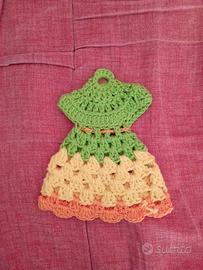 tre presine lavorate a mano, di cui un vestitino, e due classiche , fronte è retro lavorate ad uncinetto