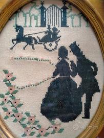 Tre quadretti ricamati a mano,bellissimi. Si può acquistare anche un singolo quadretto a 10 euro. Oggetto di classe.