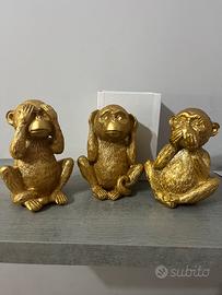 Tre scimmie decorative dorate in ceramica 15€