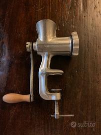 Vendo tritacarne TRE SPADE ANTICO in ghisa vintage, dotato di morsetti di serraggio ed impugnatura della manovella in legno