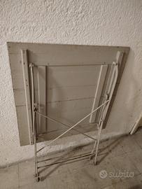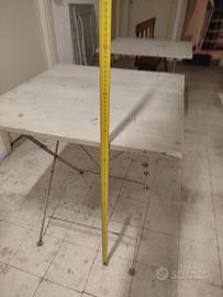 tre tavoli in legno ripiegatili realizzati manualmente che usavano per l'esterno di un locale . sono da dargli una ripulita .