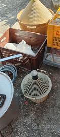 2 dame grande e piccola, treppiedi gas da esterno, mestoli grande e piccolo, pentole grande e media in alluminio, circa 100 vasi varie misure Bormioli, circa 80 coperchi nuovi, al primo che viene a prendere
