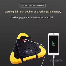 Triangolo di emergenza stradale ricaricabile con staffa di tenuta e funzione SOS utile per l'escursionismo, il campeggio, le camminate notturne, per il lavoro, hobby, fai da te e per le emergenza in caso di foratura gomma o guasto auto e moto soprattutto in casi serali o notturni. Dotata di ben tre led COB luce super luminosa per generare la maggior luce possibile con il minimo consumo energetico con doppia modalità di illuminazione, luce forte e luce debole, 30 led cob luce rossa che si illuminano ad intermittenza (2 modalità) e a luce fissa per segnalare un pericolo.