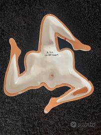 Trinacria in ceramica Siciliana Caltagirone Diametro 32, modellato e decorato a mano, firmato Salvatore Inghilterra A.S.R.
