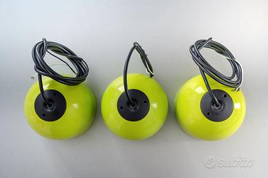 Lampada a sospensione a luce diretta. Corpo in alluminio, disponibile nelle finiture bianco lucido, nero lucido e verde lucido. Schermo antiabbagliamento. L'apparecchio è dotato di due differenti anelli con finitura verde e nero, che hanno la funzione di fissare il vetro temperato di sicurezza.
