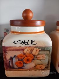 Porta sale zucchero caffè in ceramica fiorentina con tappo in legno. Colori bellissimi e prodotto esclusivo.