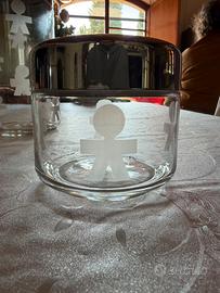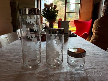 Ser di 3 barattoli da cucina Alessi della serie Girotondo anni 90, in verro di 3 dimensioni differenti