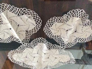 Tris centrini uncinetto, fatti a mano, misura grande cm. 38x27 - 2 piccoli cm. 25x27 colore bianco latte