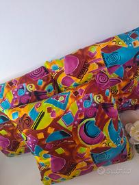 Tris di graziosi cuscinetti multicolor. In puro cotone. Cm. 40x40.