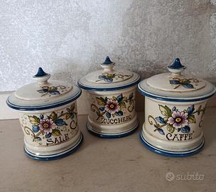 Deliziosi questi tre barattoli da cucina,che ricordano quelli della mensola della nonna.