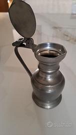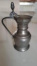 Tris di brocche in peltro per arredo, con dimensione in scala: cm.16,5, 13, 10. Hanno il coperchio con piccola decorazione, in ottime condizioni