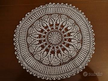 Vendo tre centrini fatti a uncinetto: il primo bianco diametro cm. 41 il secondo bianco diametro cm. 37 il terzo écru diametro cm. 25 Il prezzo è da intendersi per tutti e tre unitamente ma vendibili anche separatamente.