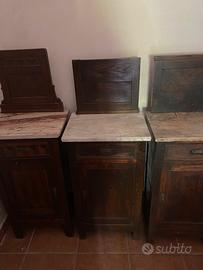 Tris di comodine vintage con ripiano in marmo