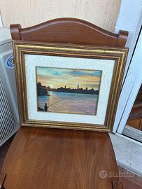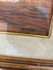 Splendido trittico di opere originali del pittore A. Perrino, realizzate negli anni '60. I quadri rappresentano scene classiche e suggestive, ideali per arredare con eleganza ambienti classici o case d'epoca. Il lotto comprende: 1. Scena di genere (Nonno e bimbo): Olio su tavola/tela, datato 1960. Cornice dorata con passpartout in velluto rosso (Misure: 66x51 cm). Ottimo stato. 2. Paesaggio Costiero: Olio su tela, datato 1965. Raffinata veduta marina (Misure: 38x30 cm). Cornice d’epoca originale. 3. Il Pescatore al tramonto: Olio su tela. Scena suggestiva e calda (Misure: 43x38 cm). Cornice d’epoca originale. Le cornici dei due paesaggi presentano i naturali segni del tempo che ne attestano l'autenticità e il fascino vintage. Prezzo per il set completo: 300€. Un'ottima occasione per collezionisti o per chi deve arredare una parete intera. Ritiro a mano a La Spezia o spedizione accurata. Prezzo trattabile