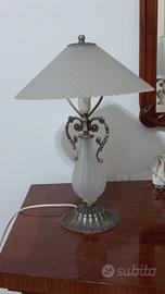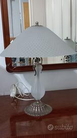 Tris di lampade : set di lampade da tavolo (per camera da letto) vintage con base in metallo e vetro satinato lavorato.