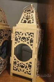 Vendo tre lanterne orientali in metallo color oro 10x10 h29 cm ideali come oggetto di arredo, decorazione per balcone, giardino o soggiorno. 20€ cad.