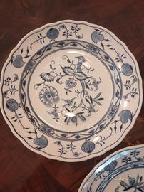 Vendesi splendido set di 3 piatti in porcellana bianca e blu, decorati con l'iconico motivo "Cipolla" (Zwiebelmuster).