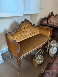 Descrizione: Elegante canapè a due posti con gambe arcuate e schienale con lavorazione capitonné.