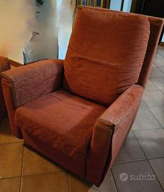 Per sgombero abitazione tris composto da divano, poltrona relax manuale e pouff color ruggine marca Poltrone e Sofà in condizioni discrete.