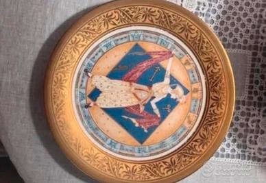 Splendido trittico di piatti da collezione in pregiata porcellana tedesca Seltmann Weiden (Bavaria), appartenenti alla serie "Gli Elementi dello Zodiaco". I piatti rappresentano i tre elementi: Terra, Aria e Fuoco. Ogni pezzo è un'opera d'arte che fonde la qualità della porcellana della Baviera con l'estetica fiorentina. • Decoro: Illustrazioni in stile Art Déco firmate dall'artista (Umberto Brunelleschi o scuola simile). • Finiture: Bordi e dettagli incisi in Oro Zecchino. • Lavorazione: Doppia cottura a forno per garantire la brillantezza e la durata della cromaticità. • Certificazione: Presente il certificato di garanzia originale che attesta la lavorazione artigianale dei maestri fiorentini. • Stato: Ottime condizioni, completi di gancio originale per l'affissione a parete. Ideali per collezionisti, amanti dell'astrologia o come complemento d'arredo elegante e senza tempo. Misure: diametro 27 cm