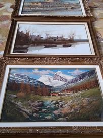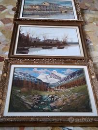 Tris di Quadri olio su tela di medie dimensioni, Di Ruggero ( Naviglio di Milano ) - R.Guerriero ( Alpeggio MonteRosa ) - Sciller ( campagna in riva al lago ), lunghezza 92 ed altezza 72cm, anche le cornici sono impeccabili, tutti conservati con estrema cura. Vendo €. 750.