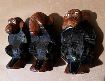 Vendo set vintage completo delle tre scimmie sagge ("Non vedo, non sento, non parlo"). Un pezzo d'artigianato intramontabile, perfetto per amanti dell'oggettistica etnica o vintage.
