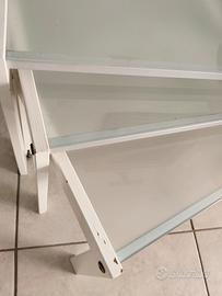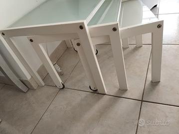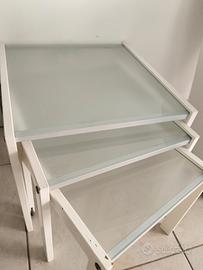 Tris di tavolinetti da salotto Calligaris. Laccati bianchi dal falegname, in origine rovere. Da ritoccare il colore in qualche piccolo punto, stabilità perfetta