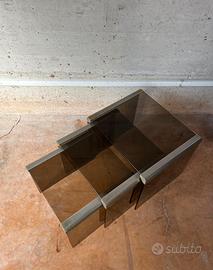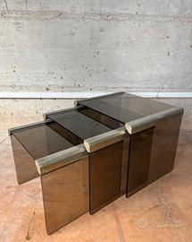 Tris tavolini Gallotti e Radice ottone e vetro fumè