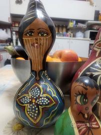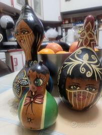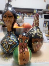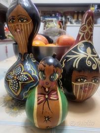 tris zucche vere essiccate dipinti a mano artigianato folk vintage
