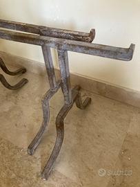 Coppia di antichi Trispiti siciliani in ferro battuto risalenti alla fine del 1800. Misure: Altezza cm. 40 ca. - Lunghezza: cm. 70 ca. - Distanza tra i piedi cm. 40 ca. Ritiro a carico dell'acquirente.