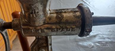 Vendo tritacarne vintage, in ghisa, marca Tre Spade 10. Funzionante e in buone condizioni.