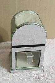 Robusto tritaghiaccio in acciaio inox a manovella, ideale per cocktails domestici (mojito, caipirinha, daiquiri, ecc.). Dimensioni 16,5 cm larghezza base, 13,5 cm profondità base, 26,5 cm altezza.