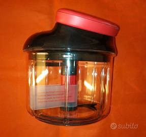 Sistema di taglio brevettato con due lame indipendenti Sistema di bloccaggio Sminuzza in 5 secondi Taglio manuale senza elettricità Recipiente trasparente da 900ml Base antiscivolo.