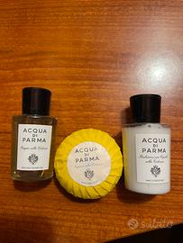 Piccolo trittico di Acqua di Parma da viaggio composto da saponetta alla Colonia, bagno doccia alla Colonia e balsamo per capelli alla Colonia